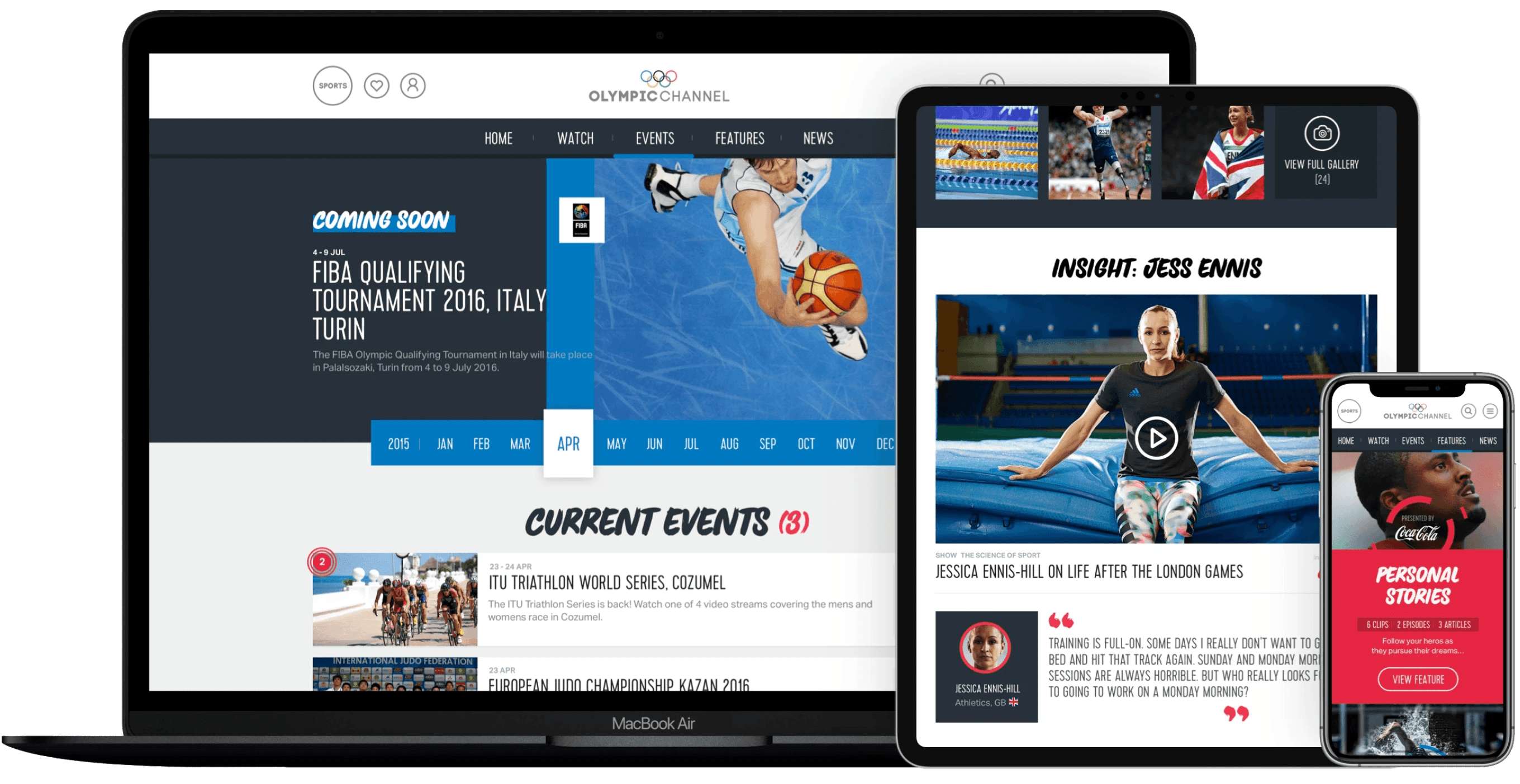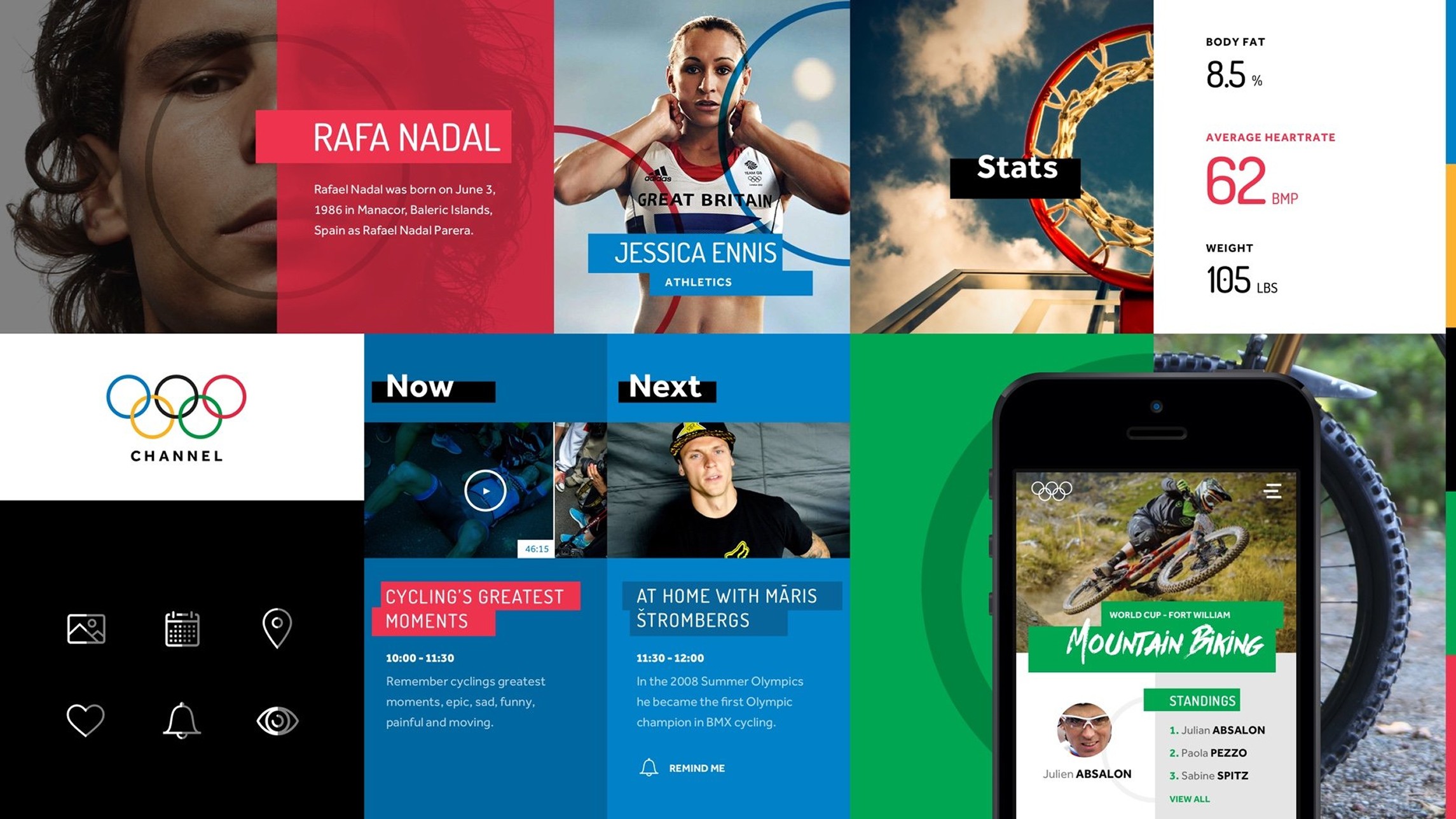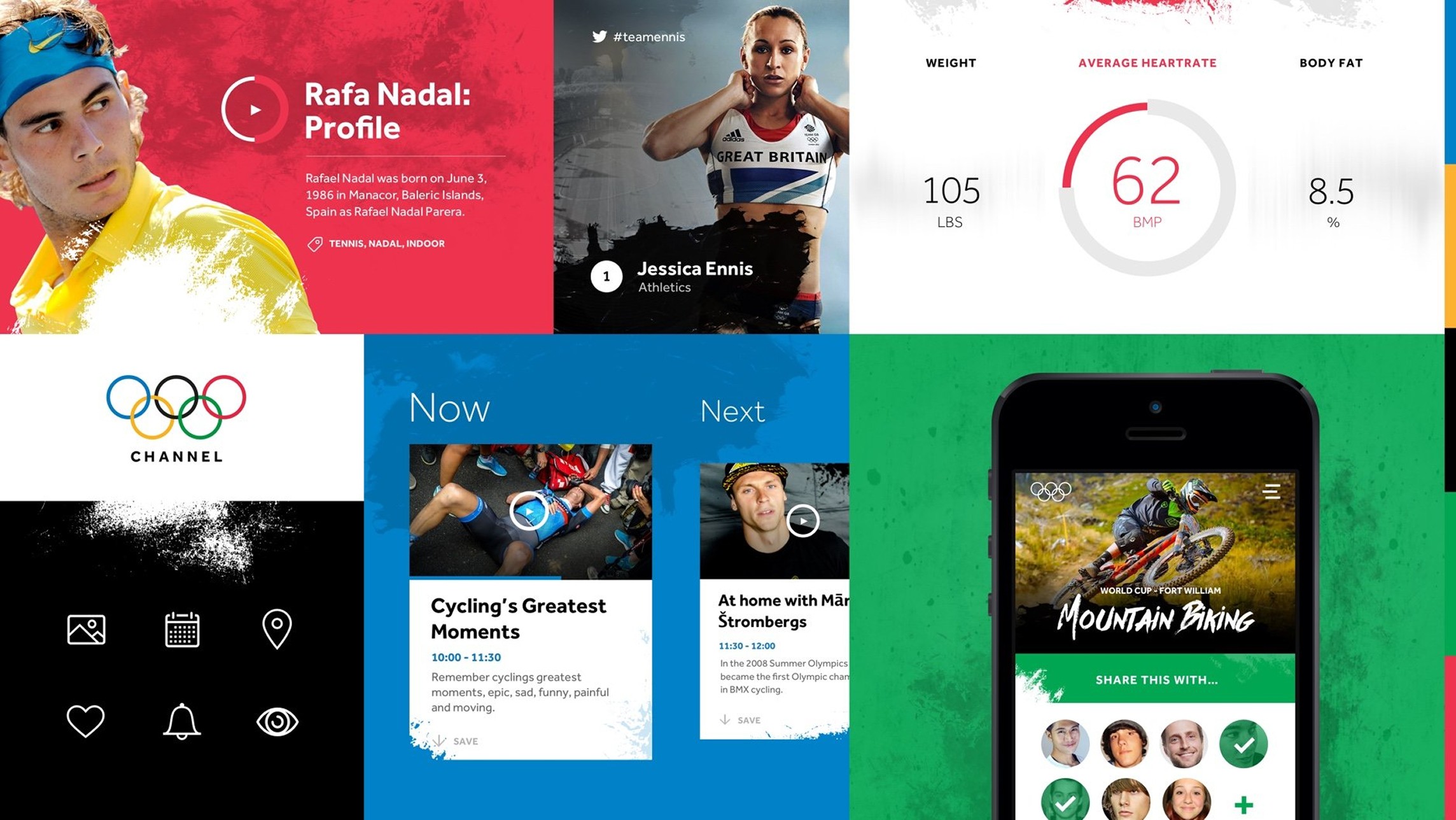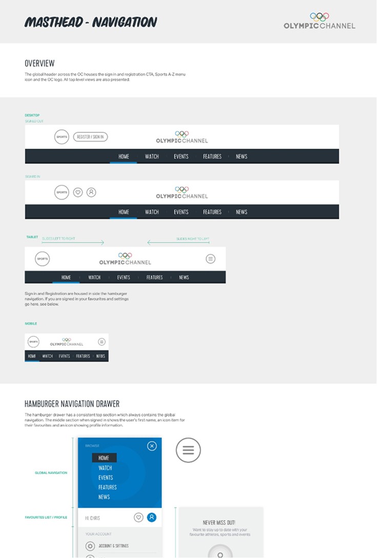 Design lead for a OTT streaming service for the International Olympic Committee, the platform reflected the brand energy of the Olympics, launched for the Rio 2016 games.