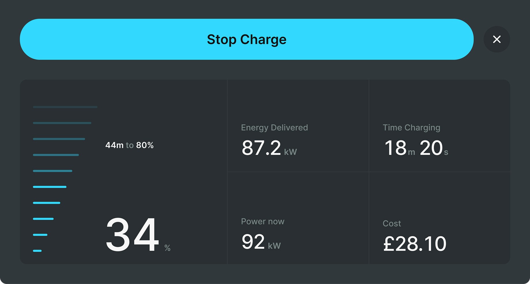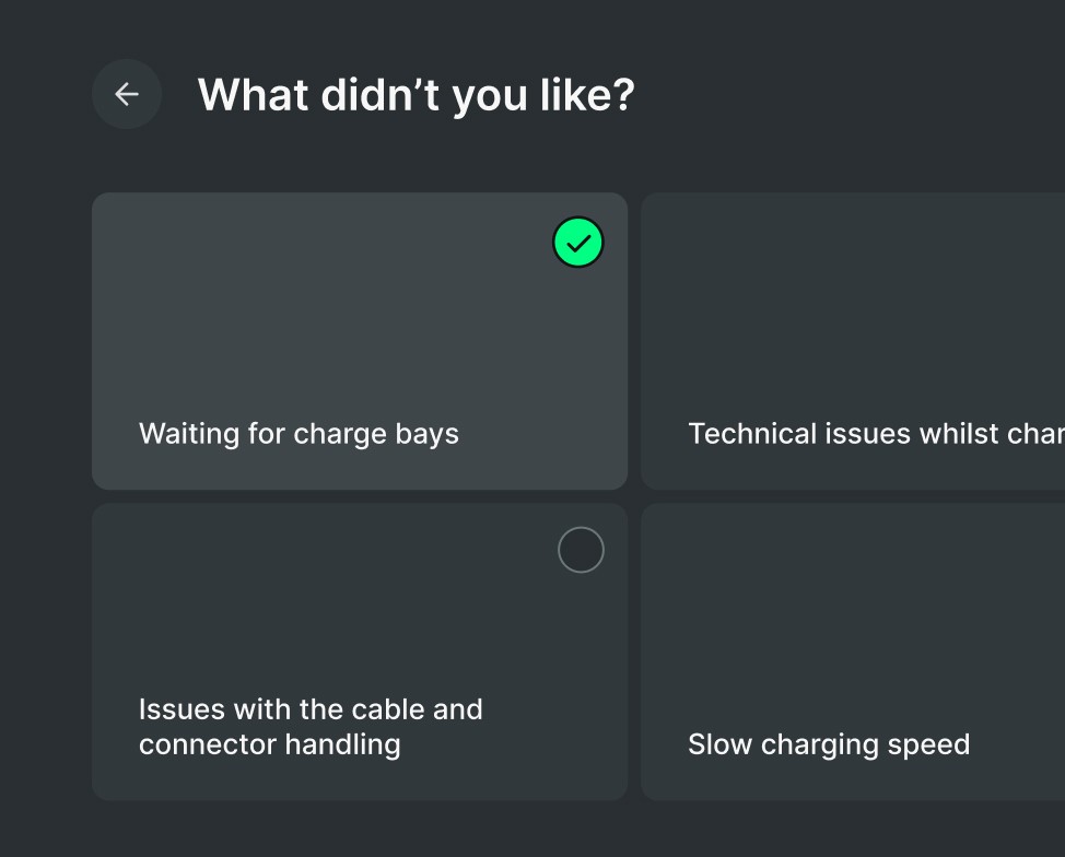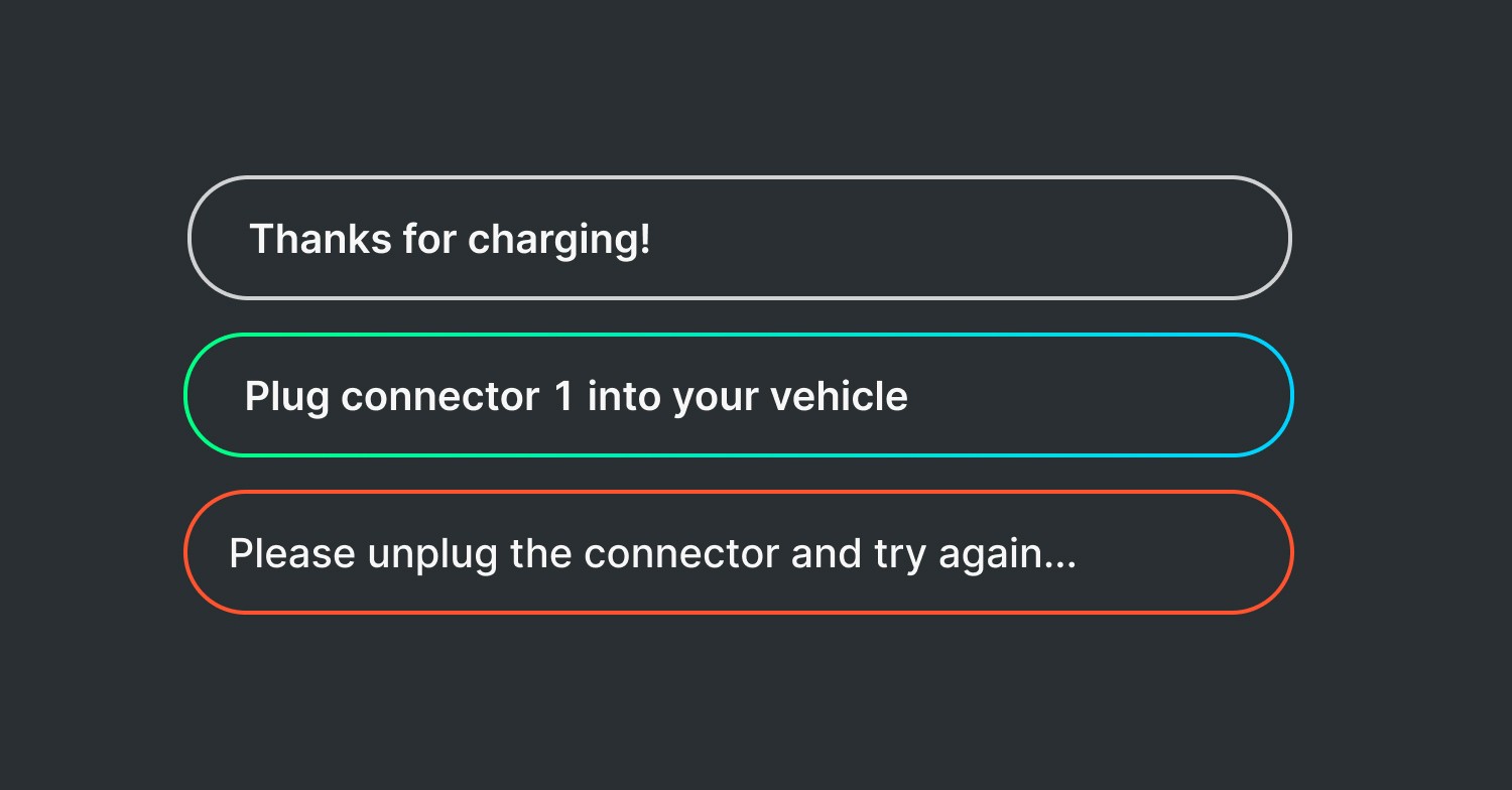 Through motion design we communicated each step of the charging process. Our industry familiar colour system meant drivers felt confident throughout the flow.