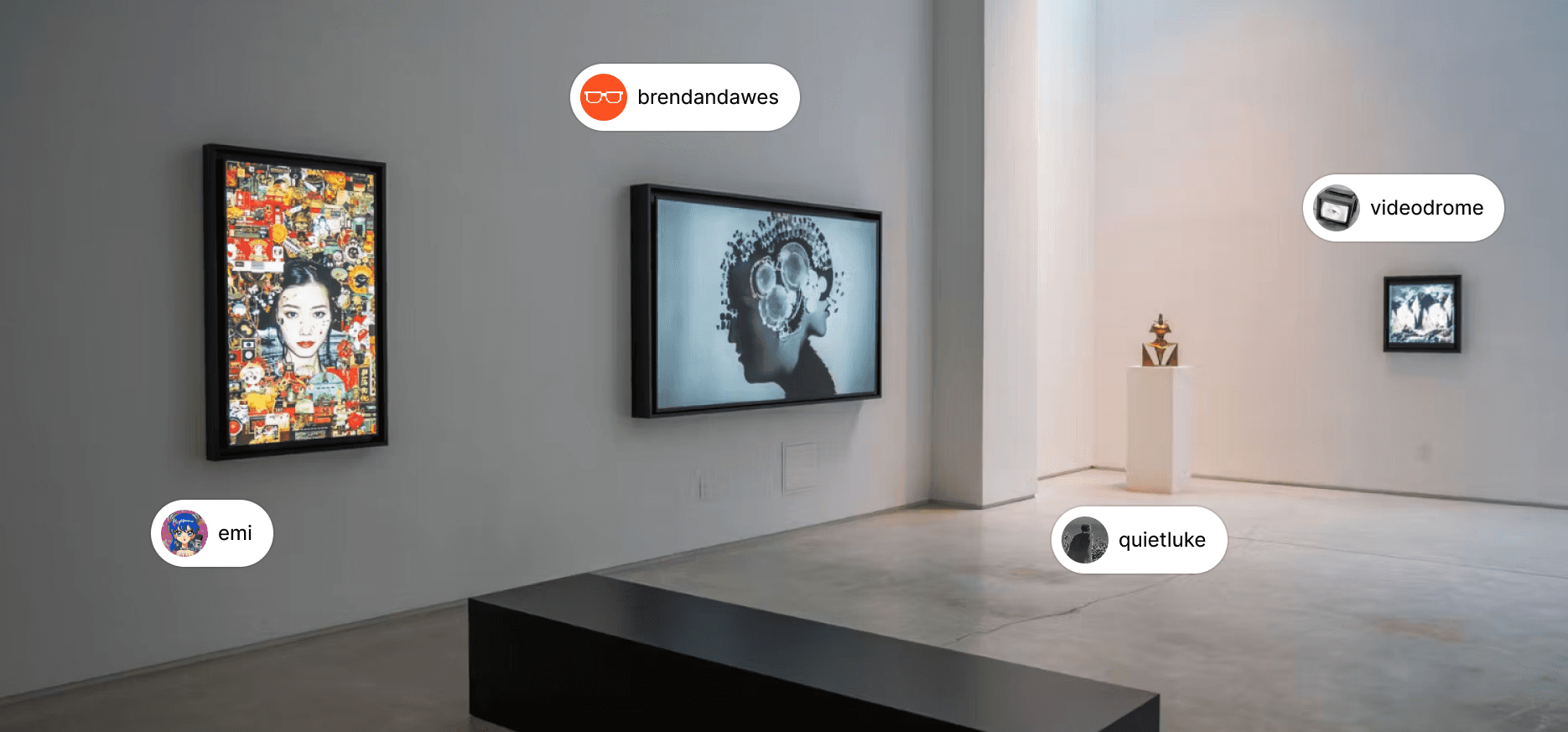 Exhibitions are a key part of our offering in attracting top artists. They invite you into the artists world, you can join communities and view their work in your room.